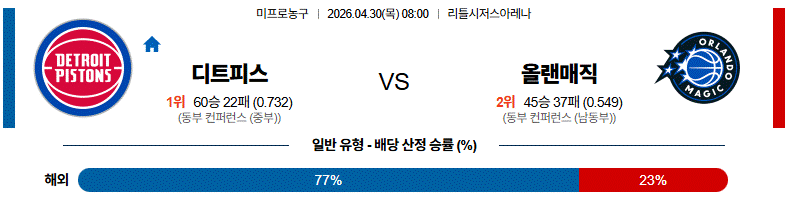 # 홈팀 : 디트로이트(60승22패)
