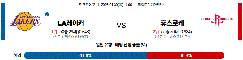 # 홈팀 : LA 레이커스(53승29패)