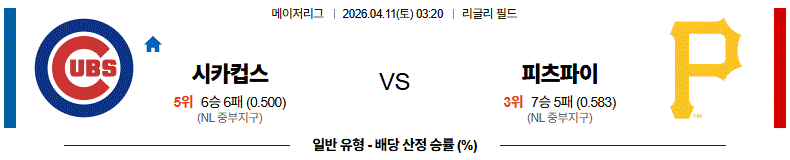 예상 승리팀 : 피츠버그 파이어리츠