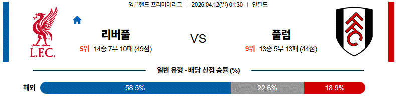 그래서 승률 데이터만 보면 리버풀 쪽으로 미세하게 기울 수 있어도, 실제 풀타임 경기력과 일정 피로도까지 함께 놓고 보면 무승부 가능성을 가볍게 볼 수 없다.