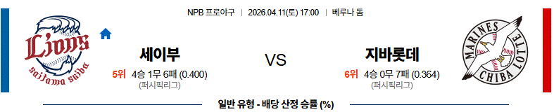 세이부 라이온즈는 에이스급 선발 투수들의 안정적인 이닝 소화 능력을 바탕으로 경기를 운영합니다. 베루나 돔의 독특한 환경에 최적화된 수비 위치 선정과 낮은 피안타율을 유지하며 지바롯데의 타선을 봉쇄하려 할 것입니다. 타선에서 단 한 번의 기회를 홈런이나 적시타로 연결할 수 있는 집중력만 뒷받침된다면 홈 승률을 이어갈 가능성이 큽니다.