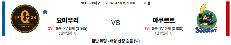 요미우리는 홈 구장인 도쿄돔에서 매우 강력한 장타 생산력을 보여줍니다. 특히 이번 경기 선발 투수의 이닝 소화 능력이 변수로 작용할 것이며, 상대적으로 불안한 야쿠르트의 불펜진을 상대로 경기 중반 이후 집중력을 발휘할 가능성이 높습니다. 수비 조직력의 안정을 바탕으로 한 실점 억제력이 승부의 열쇠입니다.