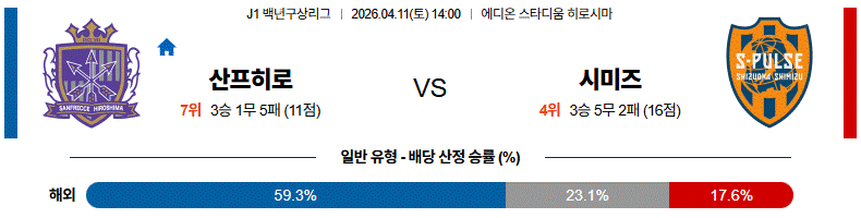 ⚠️ 전술 상성과 공격 설계의 완성도까지 함께 놓고 보면, 이 경기는 산프레체 히로시마가 주도권을 결과로 연결할 타이밍이다.