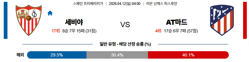 그래서 이번 경기는 세비야가 한 번 밀린 뒤 다시 버텨내는 흐름보다, AT마드리드가 문전 앞 압박을 반복하며 승부를 가져갈 가능성이 높다.