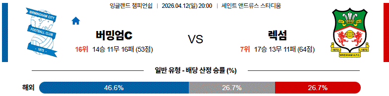 전체적인 전술 상성과 공격 전개 방향을 감안하면 버밍엄시티 승리 쪽으로 무게가 실리는 경기다.