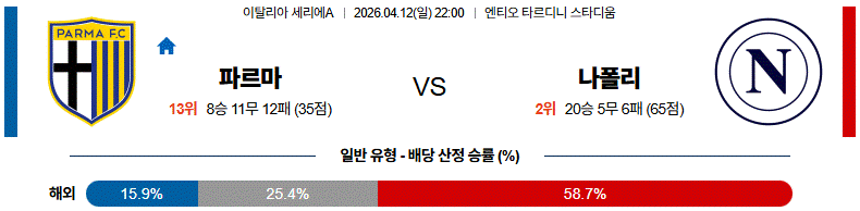 결국 이 경기는 파르마가 버티는 시간이 있더라도, 하프스페이스와 세컨볼 상황에서 더 선명한 공격 패턴을 보여줄 수 있는 나폴리 쪽으로 무게가 기우는 매치업이다.