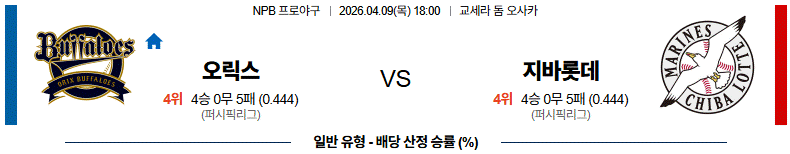 이번 NPB 경기는 안정적인 마운드의 오릭스와 기동력 중심의 지바롯데가 맞붙는 경기입니다.
