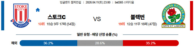 전체적인 상성만 놓고 보면 스토크시티 쪽 기대값이 한층 더 높게 잡히는 경기다.