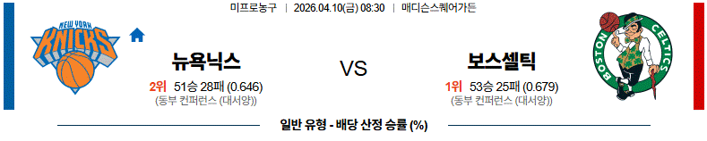 뉴욕닉스 VS 보스턴 : 메디슨 스퀘어 가든의 방패와 리그 최강의 창