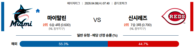 4월 08일 【 MLB 】 마이애미 vs 신시내티 MLB야구분석