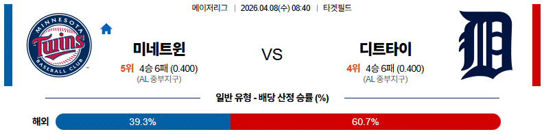 - 미네소타가 홈 장타 변수, 디트로이트가 수비 안정으로 맞서는 구도입니다.