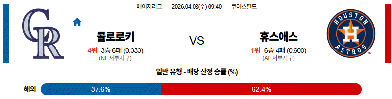 - 콜로라도가 초반 선취 후 버티면 접전이 길어질 수 있습니다.