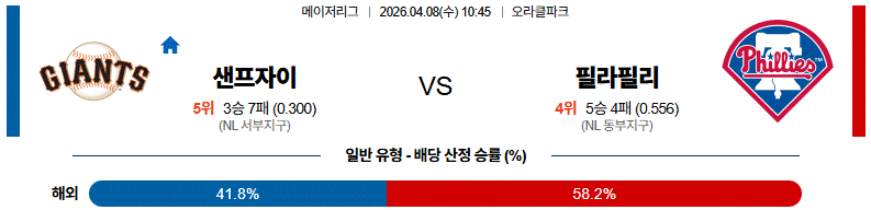 - 샌프란시스코도 홈에서 한두 차례 득점은 가능해 오버를 열어둘 만합니다.