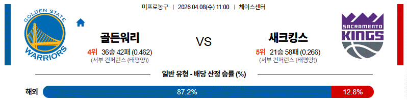 - 초반부터 외곽과 전환이 모두 활발하게 나오며 점수 교환전으로 흐를 가능성이 큽니다. 골든스테이트가 홈에서 오프볼 무브와 외곽으로 리듬을 잡고, 새크라멘토가 하이 PnR와 빠른 패스로 응수하는 구조입니다. 전체적으로는 홈팀 근소 우세를 우선으로 봅니다.