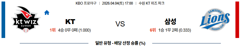 삼성 라이온즈는 최근 류지혁의 홈런과 중심 타선의 대폭발로 리그에서 가장 뜨거운 타격감을 자랑합니다. 이번 분석 데이터상 삼성은 경기 후반 집중력이 비약적으로 상승했으며, 김지찬의 빠른 발을 이용한 출루가 득점으로 연결되는 공식이 자리를 잡았습니다. 선발 이승현이 최근 5이닝 1실점의 호투를 보여준 만큼, 마운드에서의 안정감만 유지된다면 KT의 불펜진을 화력으로 압도할 가능성이 큽니다. 침묵하던 강민호의 방망이가 깨어나는 순간 삼성의 승률은 더욱 높아질 것입니다.