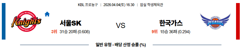 대구 한국가스공사 페가수스는 강력한 압박 수비를 통해 SK의 실책을 유도하는 전략을 준비했습니다. 정밀 데이터 분석상 가스공사는 앤드류 니콜슨의 외곽 화력이 터지는 날 승률이 급격히 상승합니다. SK의 높이에 맞서기 위해 박지훈과 차바위의 헌신적인 리바운드 가담이 필수적이며, 벨란젤의 돌파에 이은 킥아웃 패스가 3점슛으로 연결되어야 승산이 있습니다. 경기 템포를 늦추고 세트 오펜스 상황을 유도해 SK의 속공을 억제하는 것이 핵심입니다.