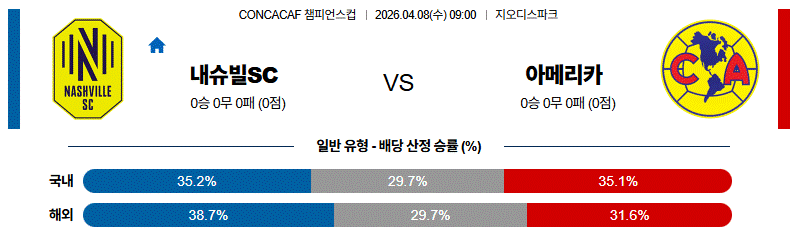 내슈빌SC는 홈에서 수비적으로 버티며 변수를 만들 수 있지만, 전체적인 공격 루트와 주도권 장악 능력에서는 클럽 아메리카가 한 단계 앞선 매치업입니다.