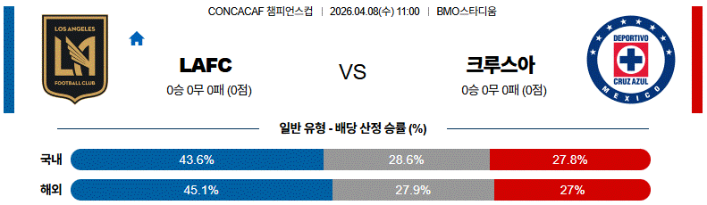 LAFC는 홈에서 강한 압박과 빠른 공격 전개로 초반부터 흐름을 장악하려 할 가능성이 높고, 크루스아줄은 수비 조직력을 바탕으로 이를 견제하며 기회를 노릴 전망입니다.