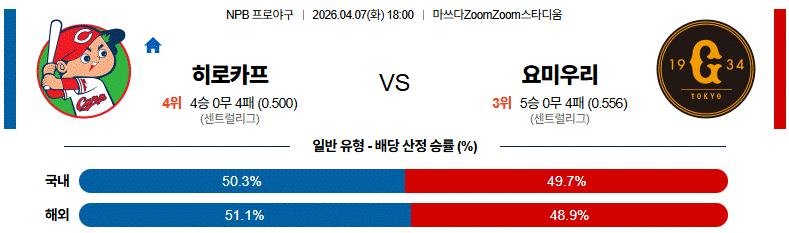 예상 승리팀 : 요미우리 자이언츠