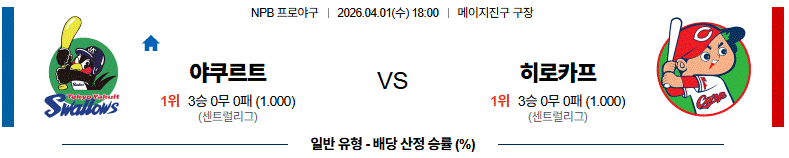 4월 01일 NPB 야쿠르트 vs 히로카프 야구분석