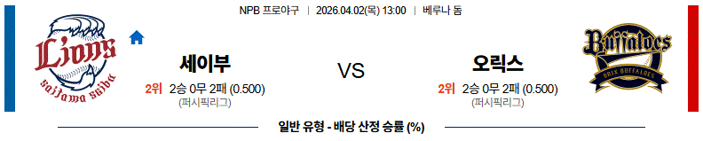세이부 vs 오릭스 경기 분석은 전력 차이가 비교적 명확한 매치업입니다.