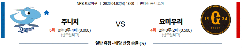 주니치는 마운드와 수비를 중심으로 저실점 경기를 만들려 할 가능성이 높으며, 요미우리는 타선의 생산력을 통해 득점 흐름을 가져가려 할 전망입니다.