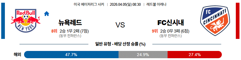결국 신시내티는 전환 패스 한 번으로 구조를 뒤집을 수 있는 팀이고, 이번 경기는 그 장점이 뉴욕레드불의 약점을 정면으로 찌를 가능성이 높다.
