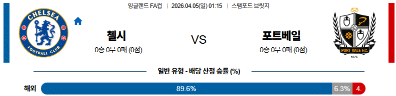 경기 양상 자체는 첼시가 주도하는 가운데 포트베일이 버티는 구도로 전개될 가능성이 높으며, 시간이 흐를수록 전력 차이가 결과에 반영될 가능성이 큽니다.