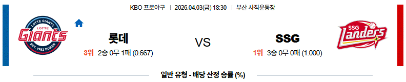 양 팀의 선발은 개막만 놓고 본다면 극과 극이고 양 팀의 현재 타격 역시 극과 극에 가깝다. 화이트의 투구 패턴을 고려한다면 첫 등판의 부진은 쉽게 풀릴 레벨이 아닌 편. 결국 로드리게스가 막아주는 동안 얻은 점수를 불펜이 잘 지켜줄수 있느냐인데 최근의 롯데 불펜은 아슬아슬함 그 자체고 SSG는 후반 경기력이 좋은 팀이다. SSG의 승리 가능성이 조금 더 높아 보인다.