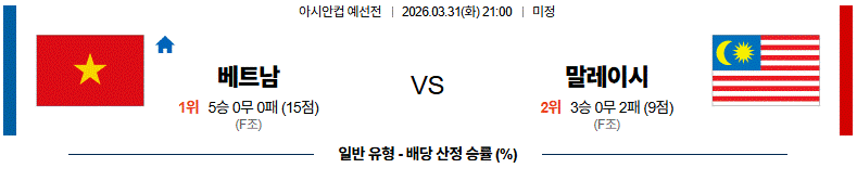 동남아시아 무대에서의 홈 앤 어웨이 데이터적인 측면에서도 베트남의 승률 기대치가 더 높게 형성되는 편이고, 실제 경기력 역시 말레이시아보다 안정감이 확실히 낫다.