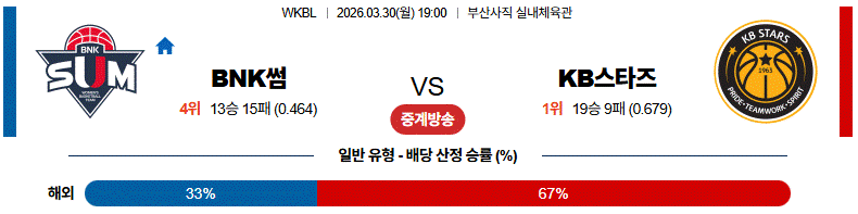 # 홈팀 : BNK 썸(13승16패)