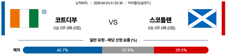 코트디부아르가 압박과 전환에서 우위를 가져갈 경우 경기 흐름을 주도할 수 있으며, 스코틀랜드는 세트피스에서 기회를 노릴 가능성이 높습니다.