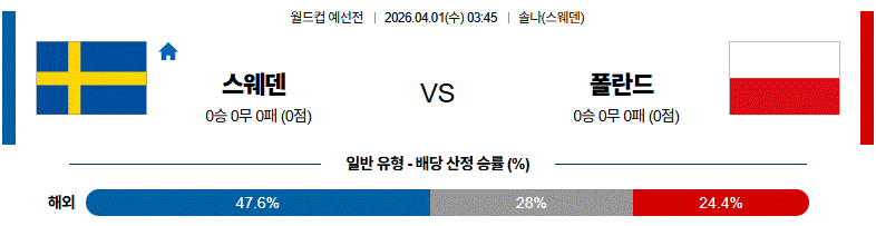 스웨덴 vs 폴란드 최종 분석에서는 양 팀 모두 수비 안정성을 바탕으로 신중한 운영을 펼칠 가능성이 높은 경기입니다.