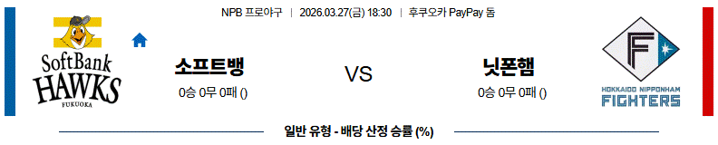 3월 27일 NPB 소프트뱅크 vs 니혼햄 야구분석