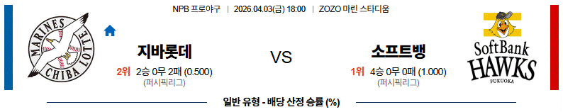 열람 야구 4월 03일 지바롯데 vs 소프트뱅크 NPB야구분석 1 4 04-03