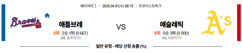 - 애틀랜타가 초반부터 장타로 흐름을 끌고 갈 가능성이 높다. 애슬레틱스가 한두 차례 반격은 가능하지만 전체 9이닝 누적 화력 차이는 분명하다.