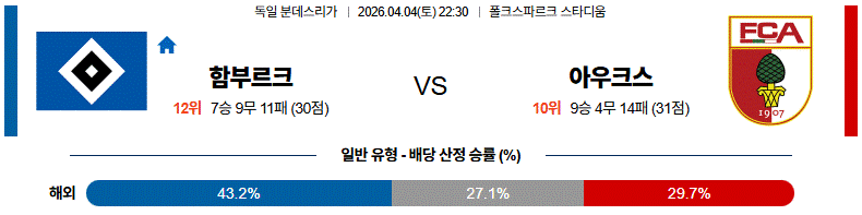 아우크스부르크는 공격적으로 맞불을 놓을 수는 있어도, 최근 수비 커뮤니케이션 흔들림이 반복되는 흐름에서는 끝내 결정적인 한 장면을 내줄 여지가 크다.