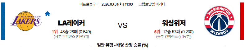 - 핸디캡: LA 레이커스 -8.5 (분할) / 안전 ML