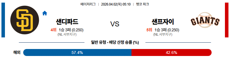 - 승패: 샌디에이고