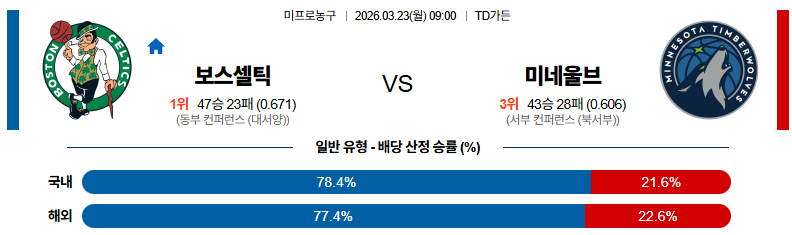 # 홈팀 : 보스턴(47승23패)