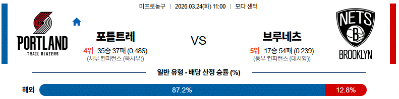 다만 공격 완성도와 하프코트 효율 측면에서는 브루네츠 쪽이 조금 더 정돈된 흐름을 보여줄 가능성이 있으며, 포틀트레가 수비에서 흔들릴 경우 추격하는 구도가 만들어질 수 있습니다.