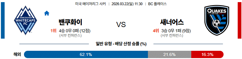 이 경기는 벤쿠버가 빠른 전개와 직선 침투의 완성도로 더 많은 결정적 득점 기회를 만들어 낼 그림이 선명하다.