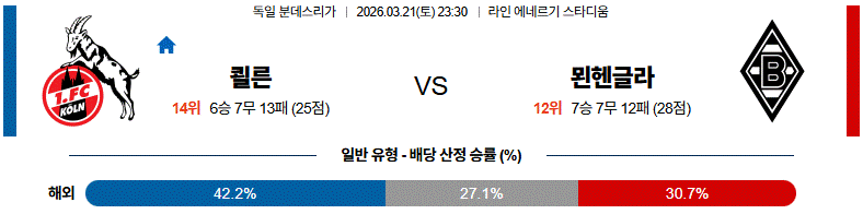 쾰른은 홈에서 강한 압박으로 경기 템포를 끌어올릴 가능성이 높고, 묀헨글라드바흐는 빠른 역습으로 대응할 전망입니다.