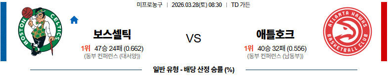 - 애틀랜타도 초반 득점은 가능하겠지만, 보스턴이 점점 수비 강도를 높이며 주도권을 가져갈 가능성이 높다.
