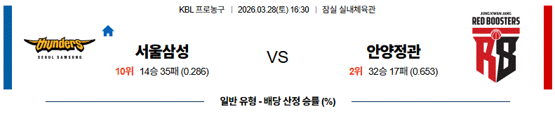◎ 가능성이 높은 선택 =>안양 정관장 승리