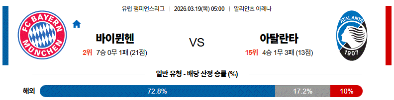 아탈란타 역시 공격적인 스타일을 가지고 있어 빠른 템포의 경기가 예상됩니다.