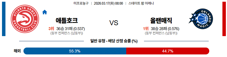 # 원정팀 : 올랜도(38승28패)