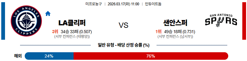 # 홈팀 : LA 클리퍼스(34승33패)