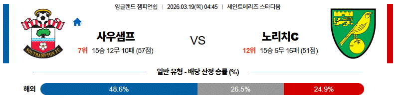전체적으로 홈 경기 이점과 경기 운영 능력을 고려하면 사우샘프턴이 조금 더 유리한 흐름을 만들 가능성이 있는 경기입니다.