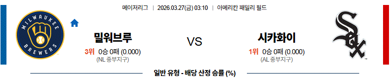 페랄타는 없지만 밀워키의 단단한 타선은 살아있다. 그리고 시즌 초반임을 고려한다면 미시로스키 카드는 이번 경기에서도 위협적일수 있는 편. 물론 스미스 역시 안정적인 투구를 기대할수 있는 투수이긴 하지만 화이트삭스의 타선은 기복이 심한 편이고 무엇보다 후반의 차이가 조금 크게 다가올 것이다. 밀워키 브루어스가 승리를 가져갈 것이다.